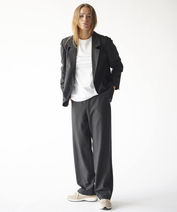 In essence, when it comes to the women's oversized suit, the secret is in the simple details. Introduce a basic t-shirt as your key to complete style. The combination of the structured oversized suit and the casual ease of a basic t-shirt creates a harmonious balance between sophistication and casual chic. So, next time you're thinking of rocking the oversized look, remember that a simple t-shirt can be the missing piece that completes your fashion narrative.