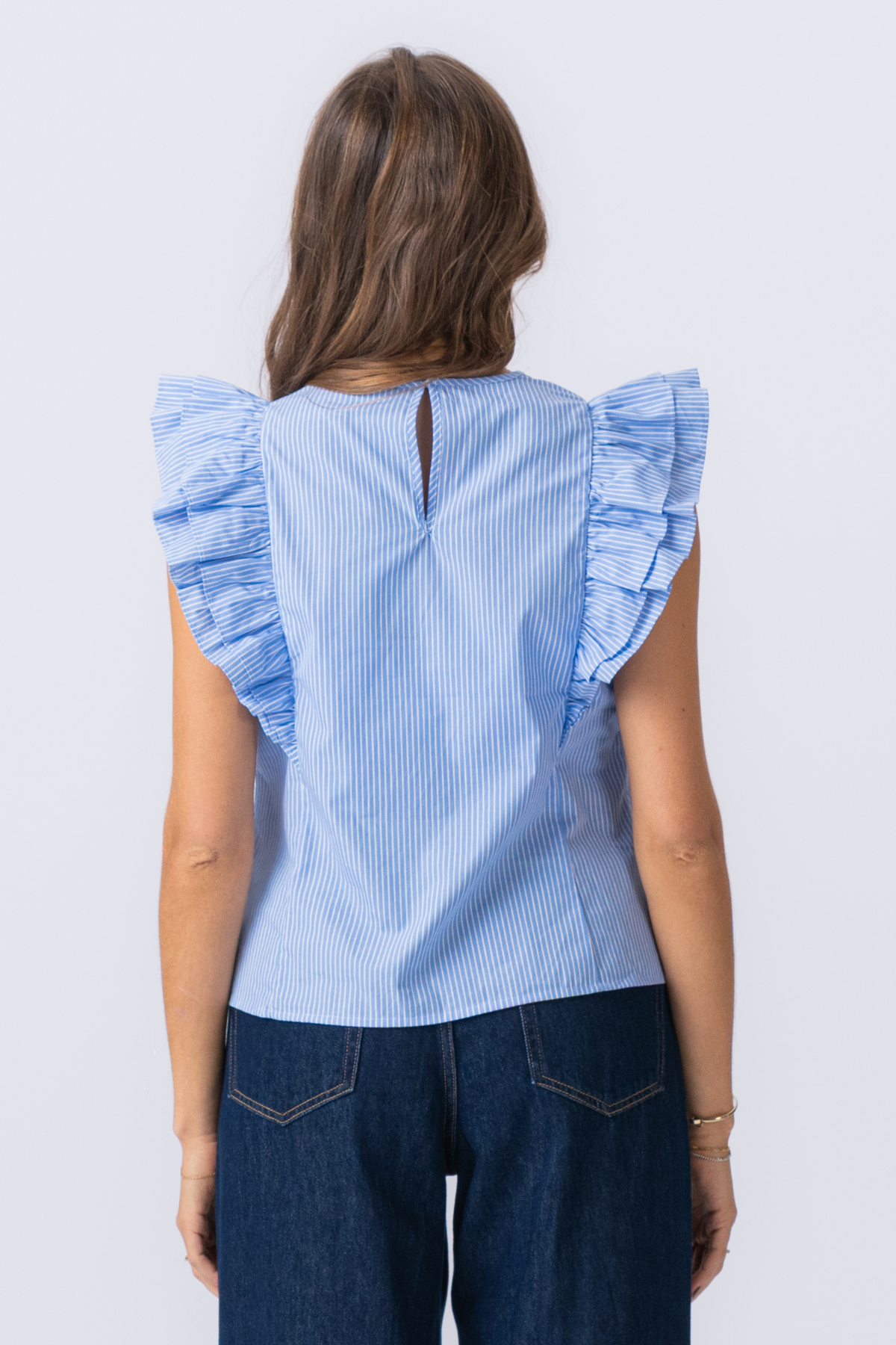 Entrez dans un monde de style sans effort et de confort inégalé avec le haut d'Aila par Vero Moda. Dans une délicieuse combinaison de couleurs bleu / blanc, ce haut est plus qu'un simple vêtement; C'est une expression de votre goût frais et contemporain et un témoignage du luxe quotidien. Conçu pour la femme moderne qui valorise à la fois l'esthétique et la facilité, l'Aila Top promet d'être un ajout polyvalent et aimé à votre garde-robe.