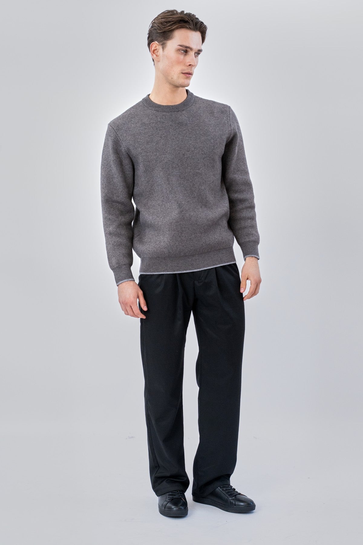 La beauté de ce pull Crewneck réside dans sa polyvalence. La teinte grise classique sert de base neutre qui complète n'importe quelle tenue. Pour un look soigné et professionnel, superposez ce pull sur l'un de nos Chemises pour ajouter de la texture et de la chaleur sans encombrement. Si vous recherchez une esthétique plus décontractée, il se marie parfaitement avec votre jean préféré ou décontracté. Pants. Les lignes épurées du col rond encadrent parfaitement le visage, offrant une silhouette intemporelle qui ne se démode jamais.