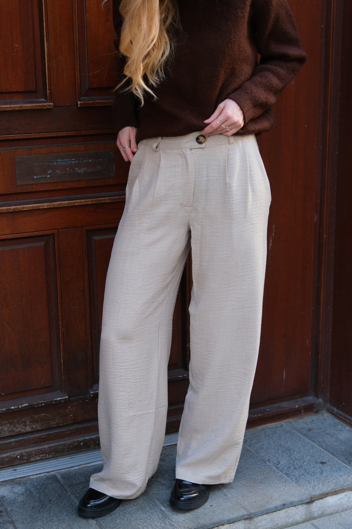 "Mettez à niveau votre style avec l'Emma Pants Lâche - beige de TeeShoppen et découvrez le mélange de confort, de style et de qualité que vous méritez. Embrassez la facilité, profitez de l'élégance discrète et laissez ces pants Transformez votre regard quotidien en une déclaration de sophistication et de grâce. "