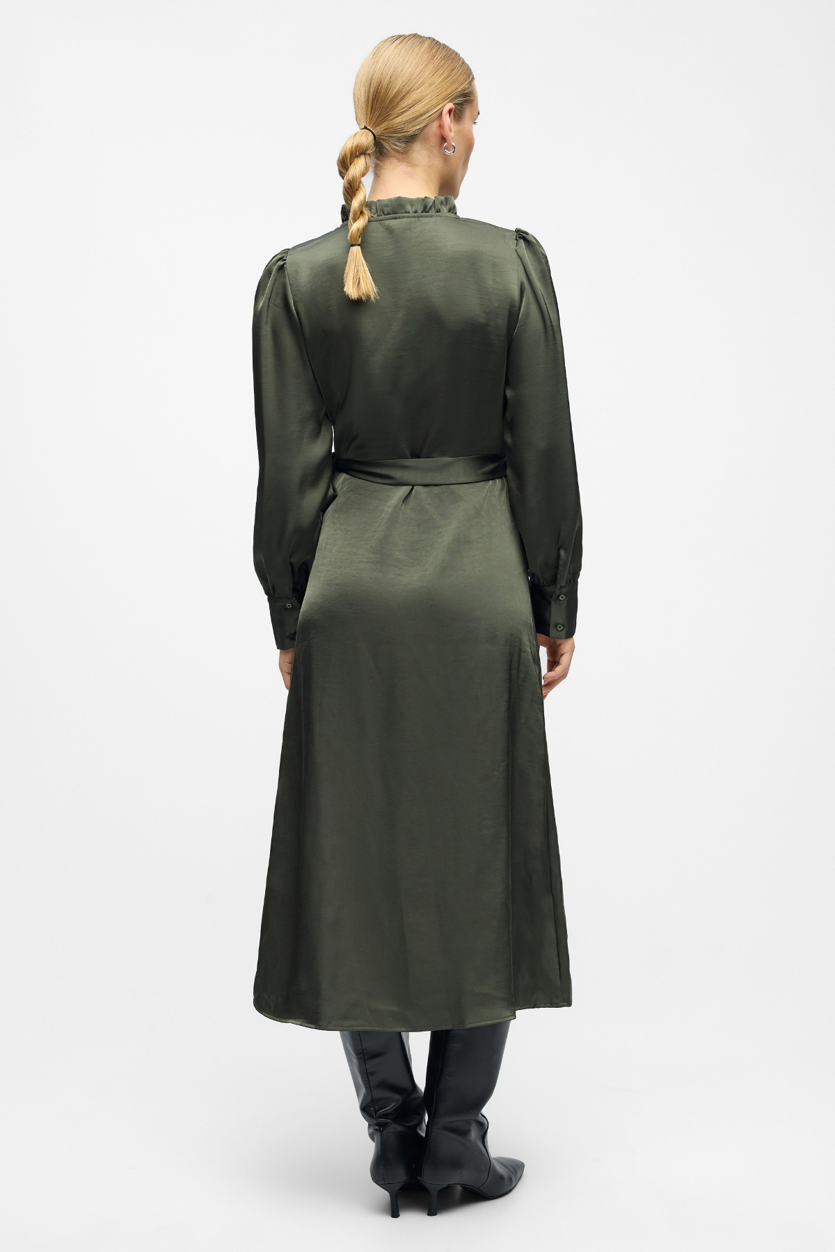 Imprimé dans un vert kambaba fascinant et unique, cette robe se distingue. La teinte profonde et terreuse rappelle un sol de forêt luxuriant ou une pierre précieuse polie, avec une riche complexité qui ajoute de la profondeur et du caractère. Cette teinte époustouflante agit comme un neutre polyvalent, jumelant parfaitement avec tout, des blancs croquants et des noirs classiques aux tons métalliques chauds. C'est une couleur qui passe de manière transparente à travers les saisons, garantissant que cette robe reste un aliment de base bien-aimé dans votre garde-robe toute l'année.