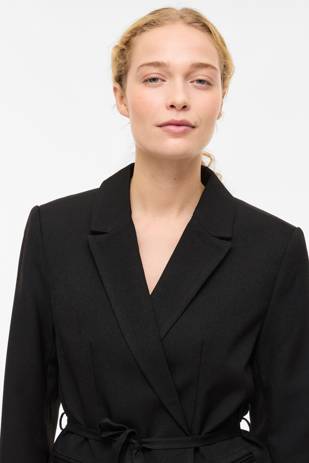 Stel je de mogelijkheden eens voor. Voor een krachtige kantoorlook draag je hem over een frisse blouse en een paar maatwerk Pants om de aandacht af te dwingen. Wanneer de werkdag voorbij is, kun je eenvoudig overschakelen naar je favoriete T-shirt met print en een versleten jeans voor een stoere, vrijetijdssfeer. Ga je een avondje uit? Drapeer het over een zijden hemdje of een onderjurk voor een extra laagje verfijnde glans. De diepe, echt zwarte tint dient als het perfecte canvas, waardoor elke kleur die je combineert er een knaller van maakt. De Gurha Blazer maakt een outfit niet alleen compleet; het definieert het.