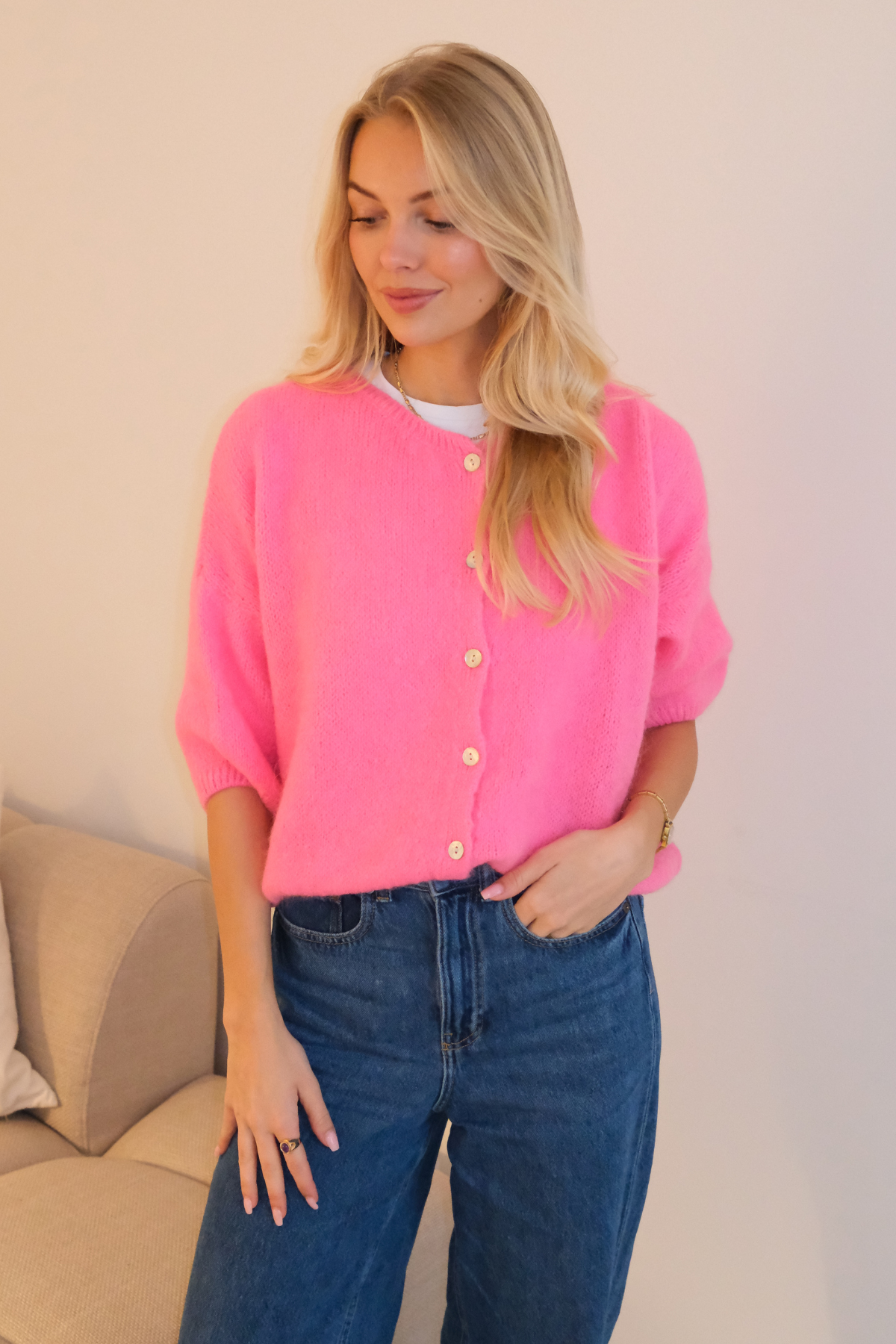 Ben je het beu om te zoeken naar de perfecte top die een verfijnde stijl combineert met alledaags comfort? Maak kennis met de Mary gebreide trui met korte mouwen van Teeshoppen. Gemaakt in een delicate babyroze tint, dit is niet zomaar een trui; Het's een veelzijdig, luxueus stuk ontworpen om je stijl met moeiteloze gratie naar een hoger niveau te tillen. Stel je een top voor die zo zacht en comfortabel is dat hij je favoriete kledingstuk wordt voor alles, van drukke werkdagen tot ontspannen brunches in het weekend.