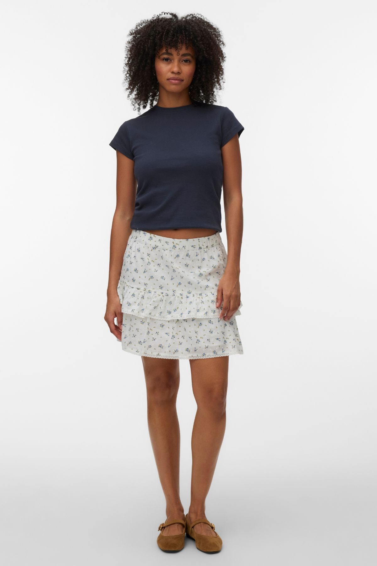 Stel je een zonnige middag voor waar de wind licht is en je outfit net zo luchtig aanvoelt. Voor die momenten is de Rine Short Skirt van Vero Moda ontworpen. Featuring a stunning Snow White and Marguerite Blue Jasper floral pattern, this skirt brings a fresh, feminine aesthetic to your seasonal wardrobe. Bij TEESHOPPEN, wij geloven in mode die er fantastisch uitziet en nog beter aanvoelt. Deze rok is de perfecte aanvulling voor iedere vrouw die klassieke stijl wil combineren met een modern randje en duurzame materialen.