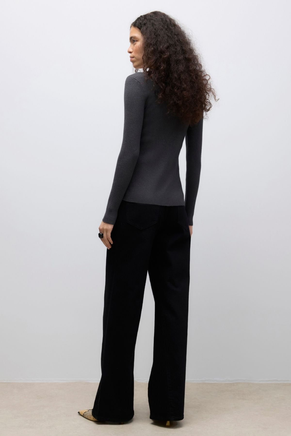 Geavanceerde melange breier: De Dark Gray Melange Weave voegt visuele textuur en een chique, moderne aanraking toe aan dit essentiële stuk.